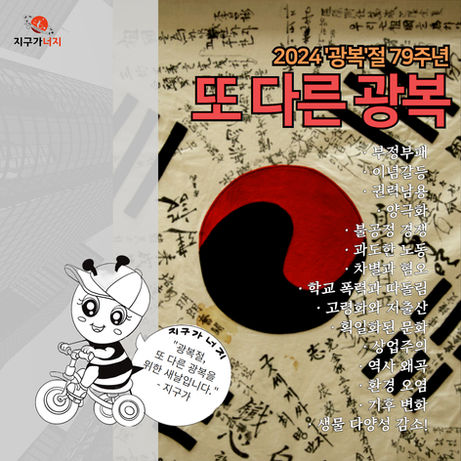 여러분이 실천하는 작은 행동 하나하나가 저에게는 큰 힘이 됩니다. 옳고 이로운 생각을 하고, 쓰레기를 줄이고, 에너지를 절약하고, 대중교통을 이용하는 등의 작은 실천들이 모여 저를 건강하게 만들고 있습니다.